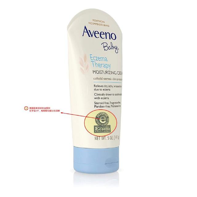 在國內比較受歡迎的還有艾維諾的濕疹面霜,媽媽們要留意A面左下角的美國國家濕疹協會圖標,在字母‘e’上的顆粒,每顆都清晰可見;B面跟同品牌的其他產品也是有區別的。