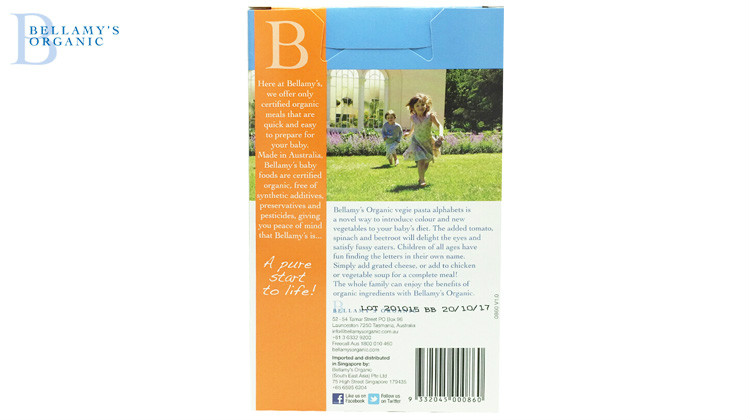 • 外文名稱(chēng) :Bellamy's Organic Veggie Pasta Alphabets 200g