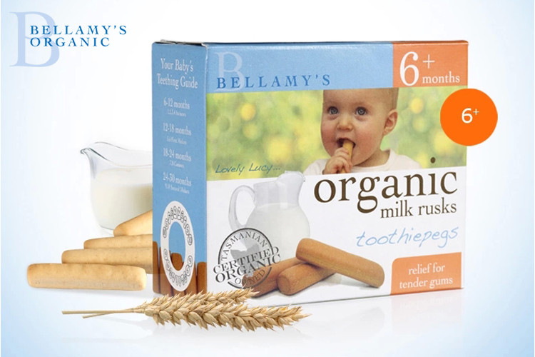 Bellamy's 貝拉米 有機牛奶面包干磨牙棒適用于6個月以上的寶寶食用。精選來自澳洲最好的有機原料制成,不添加糖份,只有有機小麥和牛奶,慢慢烤成。