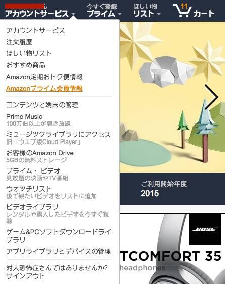 1、在會(huì)員中心(用戶名下拉欄)中點(diǎn)擊“Amazonプライム會(huì)員情報(bào)”。