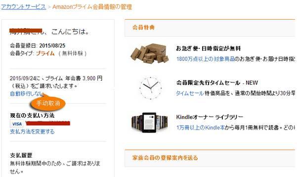 2、左側(cè)的第一行表示的你加入Prime會(huì)員的日期。第二行表示的是會(huì)員到期扣款時(shí)間,點(diǎn)擊后面藍(lán)色字樣“自動(dòng)移行しない”,進(jìn)行手動(dòng)取消。