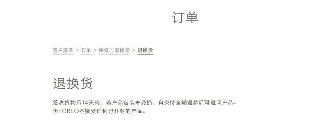 目前官網(wǎng)給到的答復(fù)僅限是在官網(wǎng)買的Foreo產(chǎn)品,對于海淘其他銷售渠道的Foreo產(chǎn)品比如梅西百貨、lookfantastic等的退貨,官網(wǎng)不保證,具體參考官網(wǎng)介紹。
