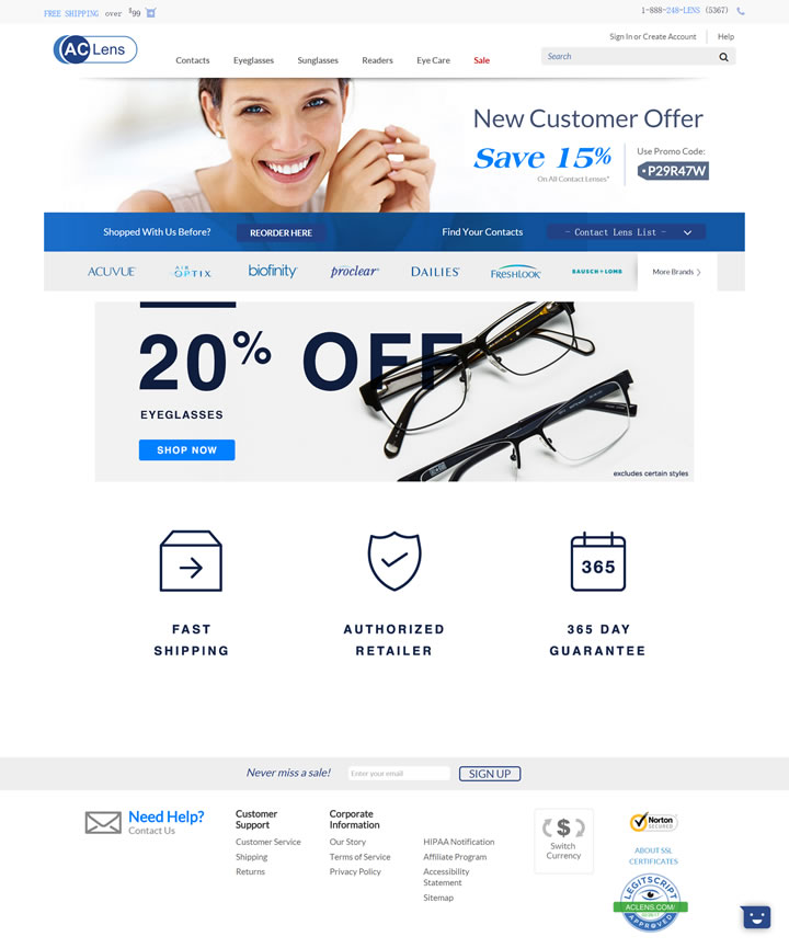 AC Lens是一家提供全方位服務直接交付的隱形眼鏡供應公司。作為世界上增長最快的光學供應商之一,我們將最低的價格與專用的個性化客戶服務相結合。目前,我們向所有50個美國州以及歐洲、南美和亞洲運送。