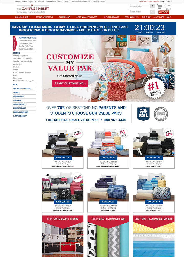 Our Campus Market是大學(xué)生和家庭的首選網(wǎng)站。可以選擇各種宿舍床上用品、房間和公寓裝飾、大學(xué)護(hù)理包、文憑框架、學(xué)生服裝和更多, 為入學(xué)、畢業(yè)等準(zhǔn)備。OCM在全國范圍內(nèi)為900多個校區(qū)提供服務(wù),保證每個校園的“認(rèn)可”。當(dāng)您從我們的校園市場購買時,我們確保您有適合您學(xué)院的產(chǎn)品。