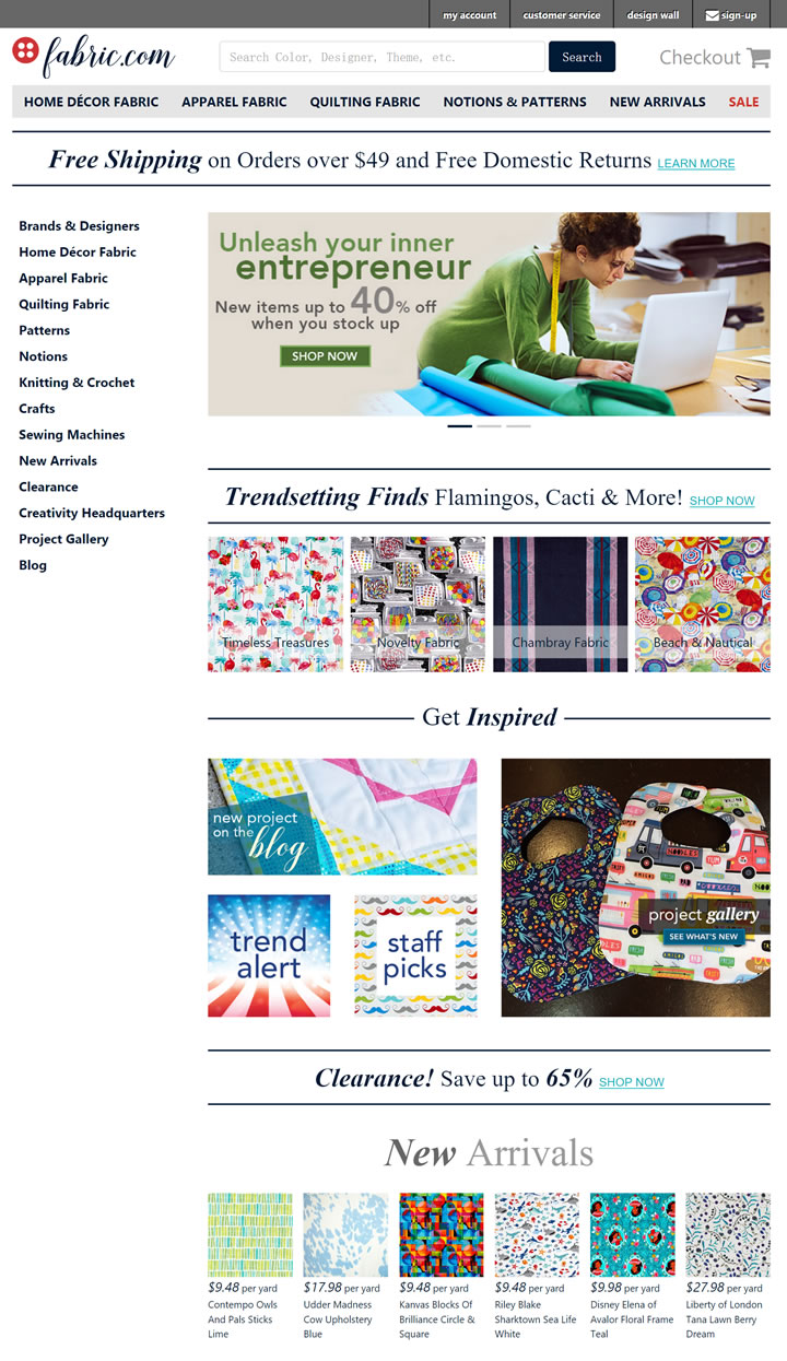 Fabric是全球一家領先的主要以銷售各類面料、紡織品為主的專營店。它提供的面料款式主要包括:絎縫面料、家居裝飾面料、時尚面料及其它圖案等。