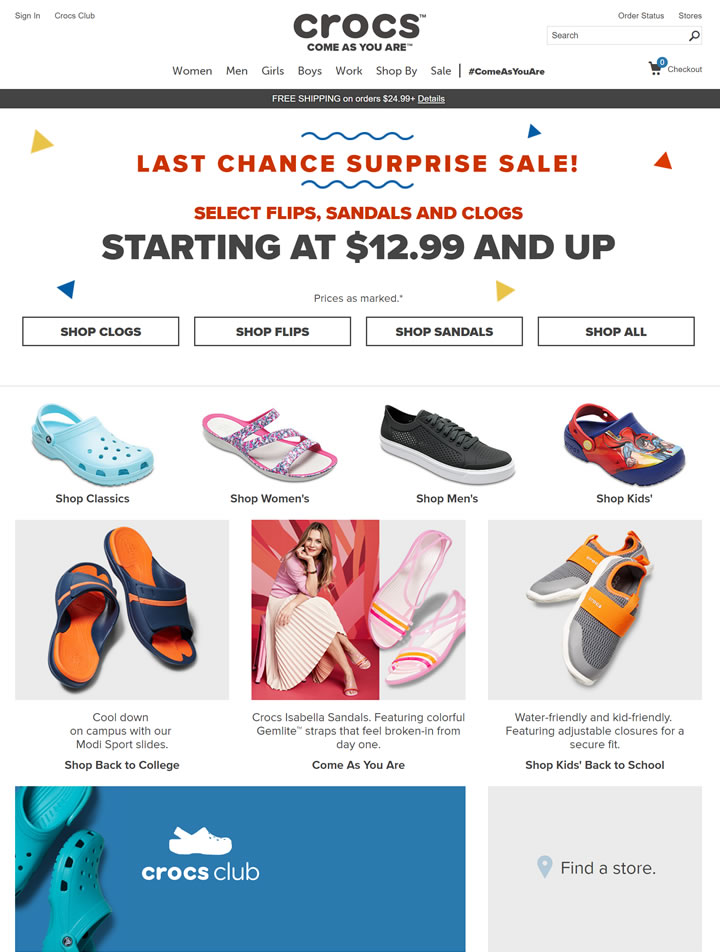crocs(卡駱馳)是一家總部位于美國科羅拉多州的鞋履設計、生產及零售商,以crocs品牌于市場上推出男裝、女裝及童裝的舒適鞋款。創立于2002年,crocs鞋子最初的產品市場定位是帆船運動和戶外運動者,后來因為它穿著舒適而受到不同消費者的青睞。
