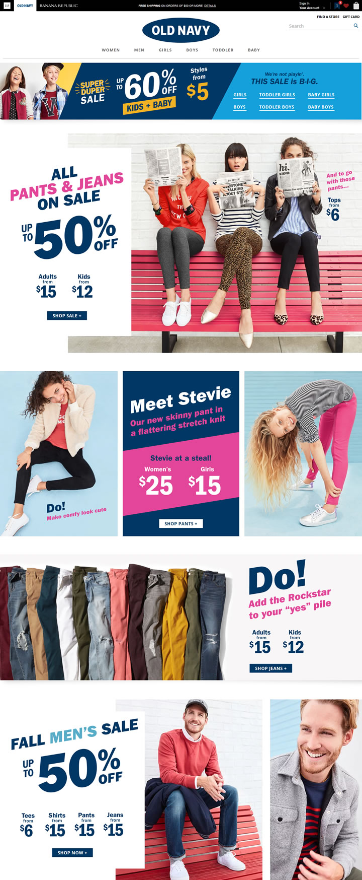 Old Navy 創立于1994年,是蓋璞公司(Gap Inc.)旗下品牌之一,以充滿樂趣、時尚、家庭感、高貴不貴的品牌形象廣受全球消費者歡迎。Old Navy同時是目前美國最大的服裝零售品牌,在美國、加拿大、日本等門店數量達到1,000多家。Old Navy服裝以超值的價格、易搭配款式與優質面料風靡全球,同時適合闔家在極富趣味的店鋪環境中充分體驗一站式全家購物樂趣。最經典商品包含Performance衛衣,RockStar超緊身牛仔褲、棉質logo T恤與人字拖等。