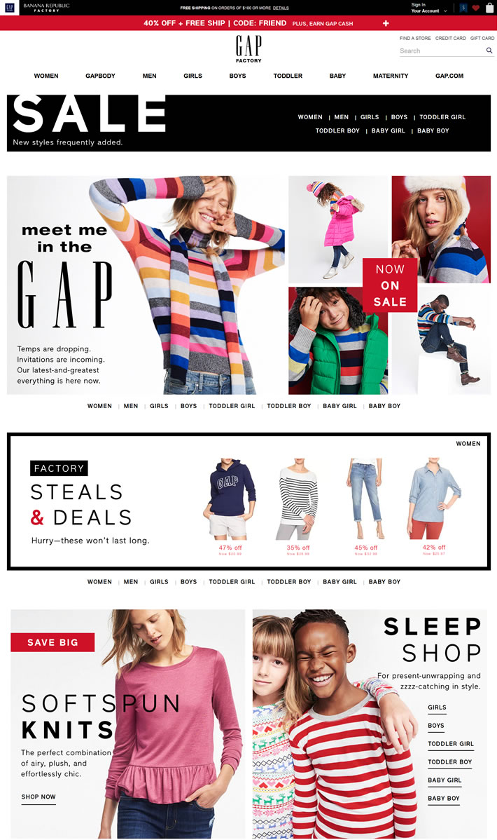 Gap工廠店官網,以折扣價格購買女士、男士、嬰兒和兒童衣服。