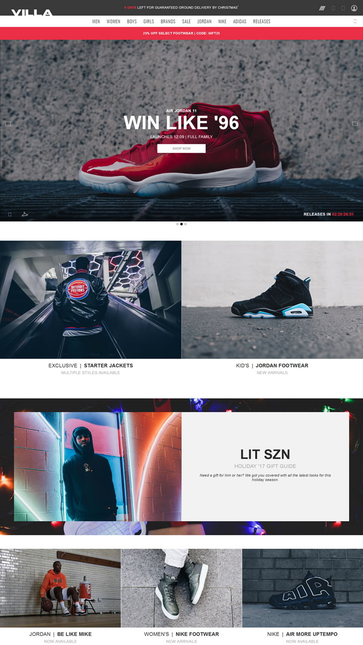 VILLA是美國最成功的新興城市生活方式零售商之一,在10個州擁有120家門店。商品涵蓋各大運動品牌的運動裝,鞋類,配飾等。VILLA通過融合時尚,音樂,體育,社區,娛樂和其他主題來塑造我們社區的熱情,我們力求為客戶提供高能量購物體驗。VILLA團隊不懈努力,確保我們的鞋類,服裝和配飾提升您的風格,同時為您提供卓越的客戶服務。