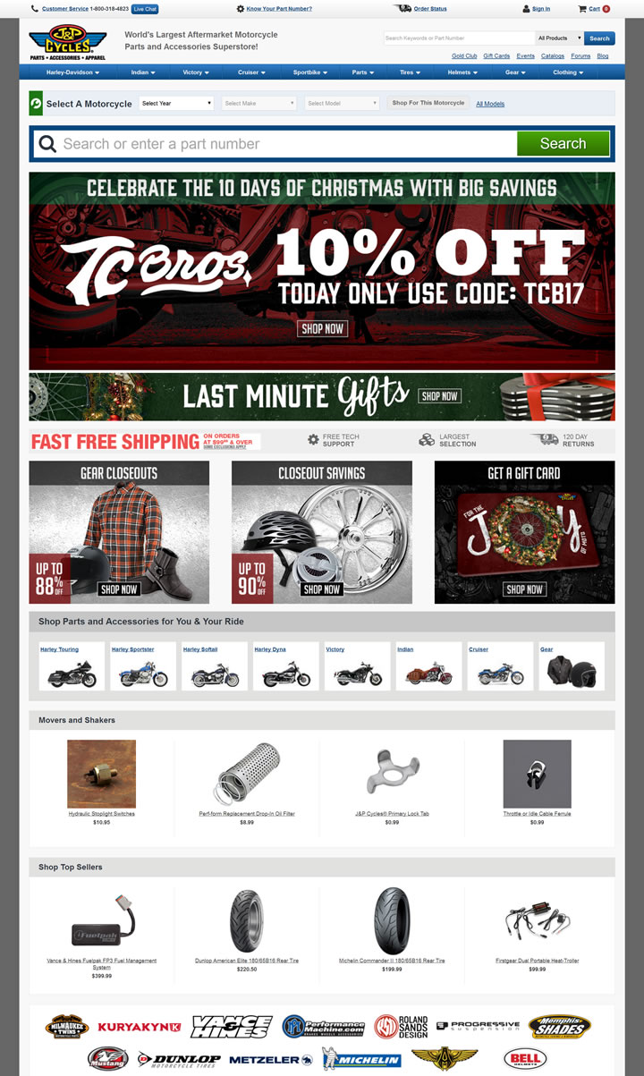 J&P Cycles是世界上最大的售后摩托車零配件超市,是摩托車零配件行業中最有名、最悠久的品牌之一。 J&P Cycles專注于客戶服務超過35年,建立了哈雷戴維森、鈴木、川崎、雅馬哈和本田摩托車車手的忠實客戶群。