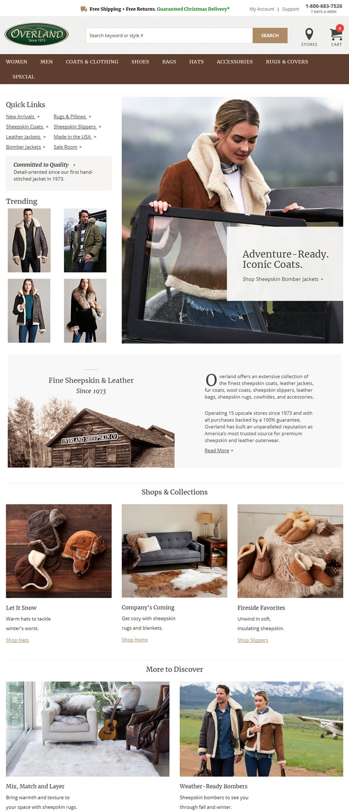 Overland提供了最好的羊皮大衣、設計師皮夾克、豪華毛皮大衣、高檔服裝、鞋子、羊皮拖鞋、皮革手袋、羊皮及牛皮地毯和羊皮汽車座椅套和配件。自1973以來經(jīng)營13家高檔商店,Overland已成為美國最可靠的高品質(zhì)羊皮、皮革、毛皮服裝及家居產(chǎn)品的來源。