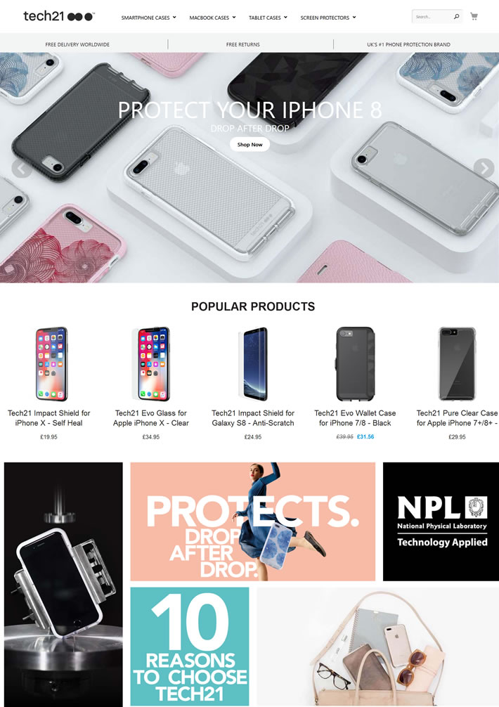 英國NO.1防摔保護殼品牌,蘋果優質第三方品牌配件。身為一間快速成長且不斷創新的英國科技公司,tech21致力于研究發展材料科學。嘗試不可能,是我們的事業愿景,研發出世界上最具智能的防沖擊保護殼,是我們的創新使命。我們不斷突破自我,挑戰研發極限,只為創造無可取代的用戶使用體驗。