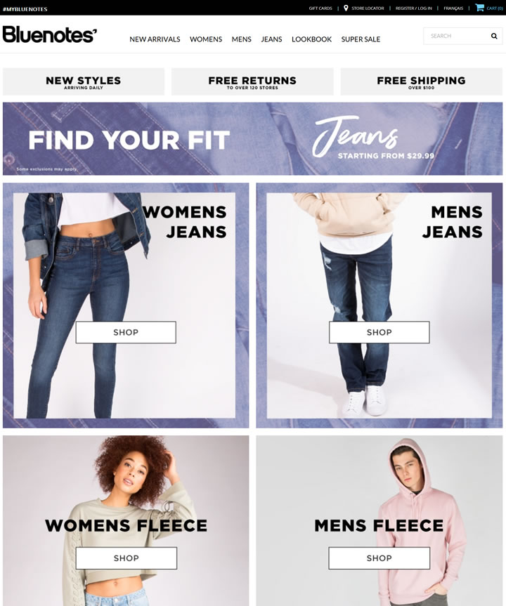 我們在全國擁有125家門店,我們的在線網站Bluenotes.com提供在加拿大和美國的運輸。