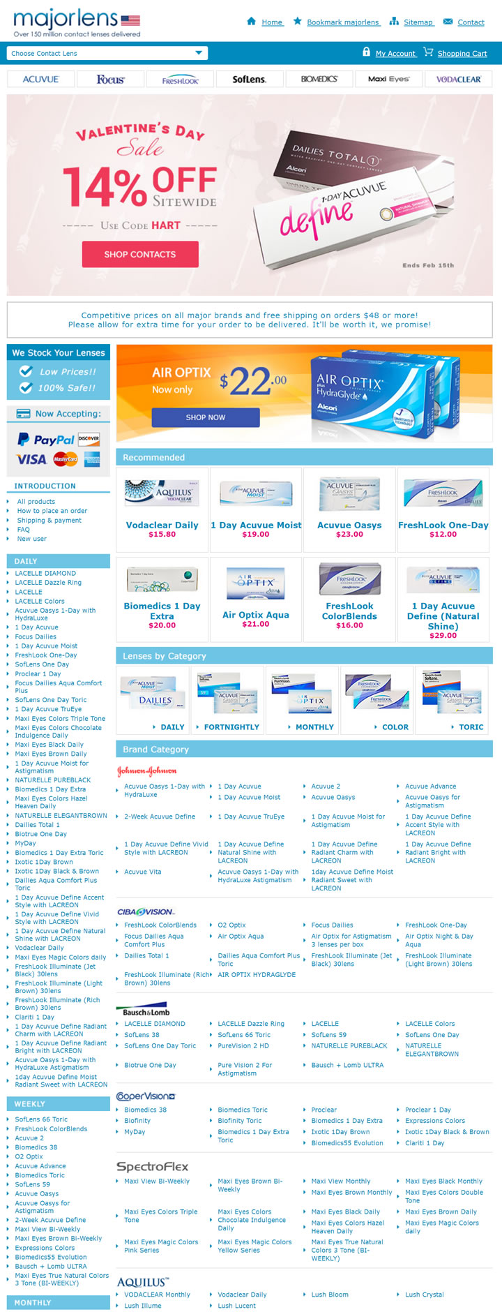 Majorlens.com以最低的價格提供品牌隱形眼鏡,如Acuvue、Freshlook和Air Optix。