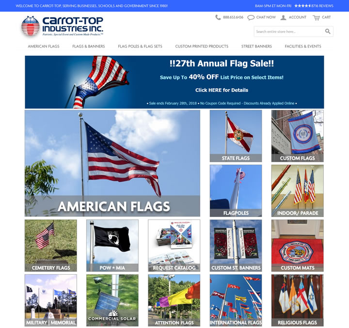 Carrot-Top Industries是美國最大的旗幟經(jīng)銷商,自1980年以來,為學(xué)校、企業(yè)和政府提供美國制造的旗幟和旗桿,也提供其它國家的國旗。