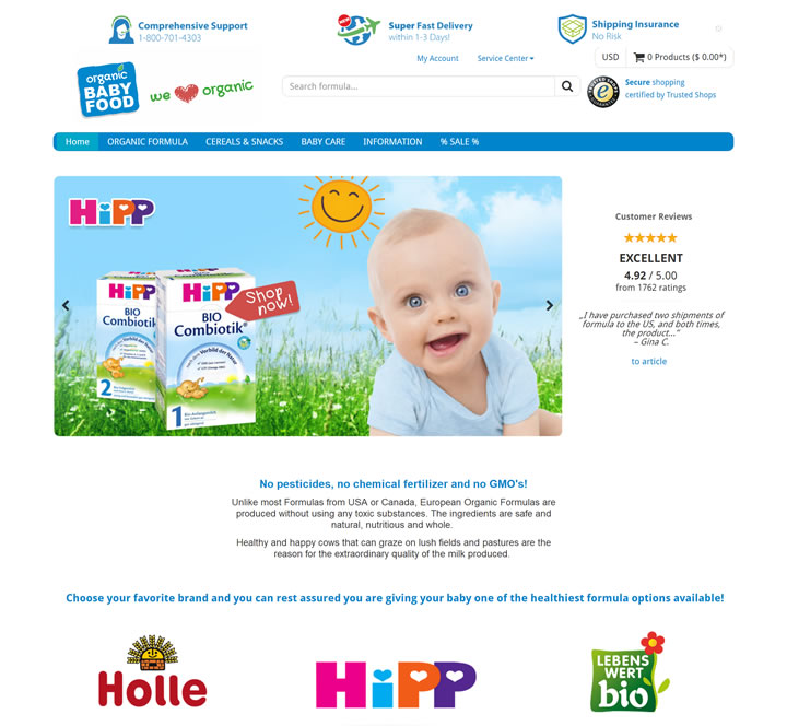 Organic Baby Food是歐洲有機嬰兒食品最大的市場!我們是Holle、HiPP和Lebenswert生物配方最實惠、值得信賴和可靠的供應商。Organicbabyfood24.de只提供不使用殺蟲劑、化學肥料或轉基因生物的產品。