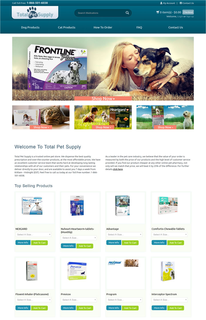 如果您正在尋找寵物護理和寵物藥房,那么您來對地方了。Total pet supply是您的高品質和折扣寵物藥品在線目的地。