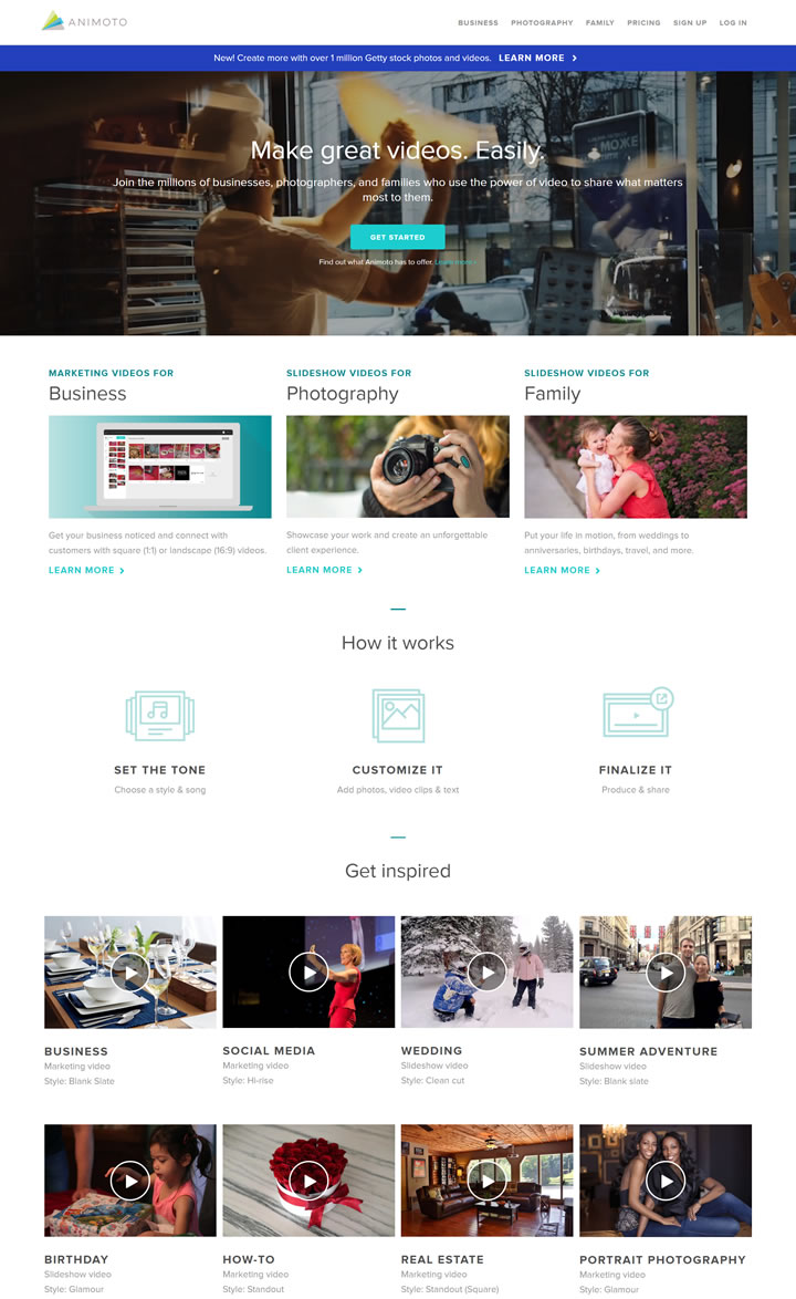 Animoto的視頻制作者可以在幾分鐘內將您的照片和視頻剪輯轉換為專業(yè)視頻。快速而簡單 – 我們輕松創(chuàng)建視頻。