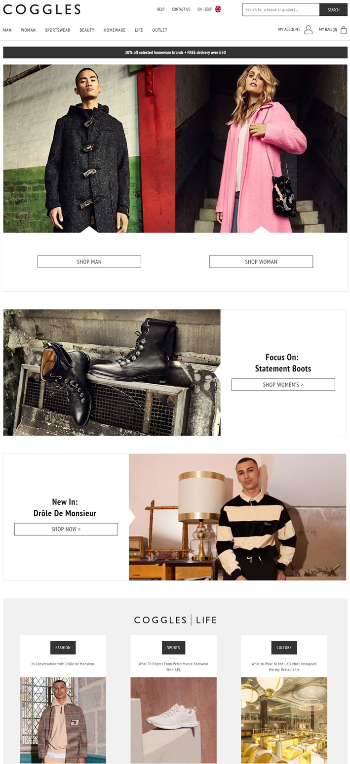 Coggles成立于1974年,是一家高級國際時裝零售商,擁有200多名男女設計師收藏來自老牌時裝店、新興設計師和稀有國際品牌。