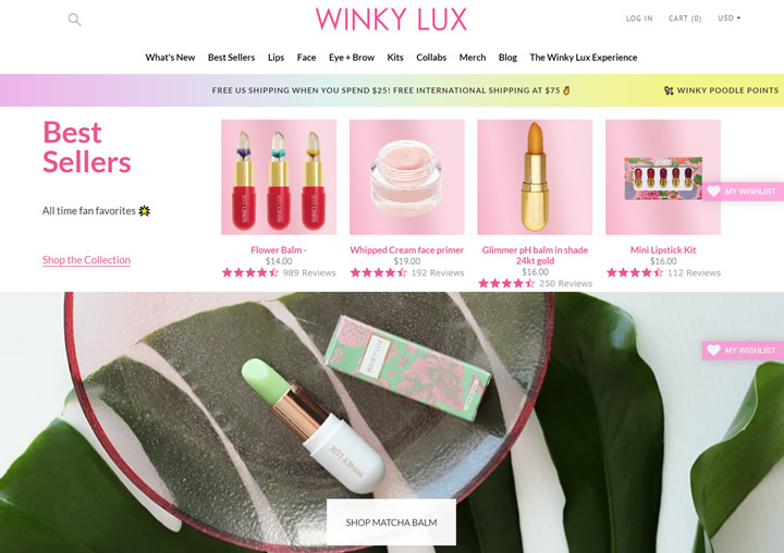 Winky Lux是美國的一個快時尚彩妝品牌,以少女心和浪漫清新的包裝設計而出名,最有名的產品是透明花瓣潤唇膏,Winky Lux每45天上新一次,這也是它們家的特色之一。