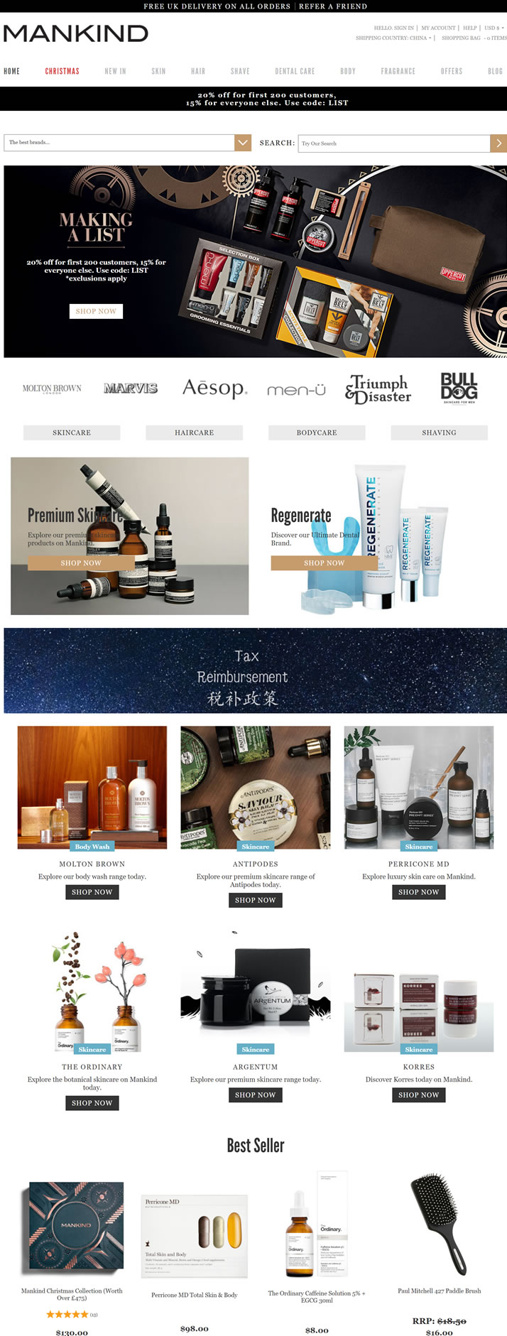 Mankind是英國一家領先的男士美容護發用品公司,為廣大男性消費者精選最新最佳的護膚、護發、修臉用品,并為其創造簡單,快速,有趣的購物體驗。