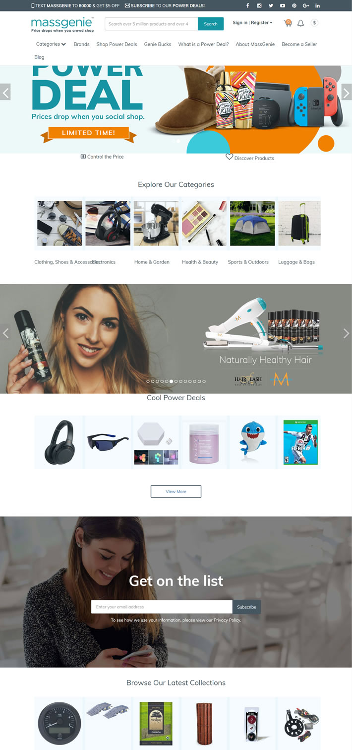 MassGenie獨特的模型為人們提供了發表意見的機會。“Power Deals”為買家提供杠桿,通過社交媒體推動的人群購物來降低價格。 賣家競相為買家提供最深的折扣。通過使用MassGenie的Power Deal并利用社交購物和分享的力量,我們以最優惠的價格為客戶提供他們需要或想要的產品。