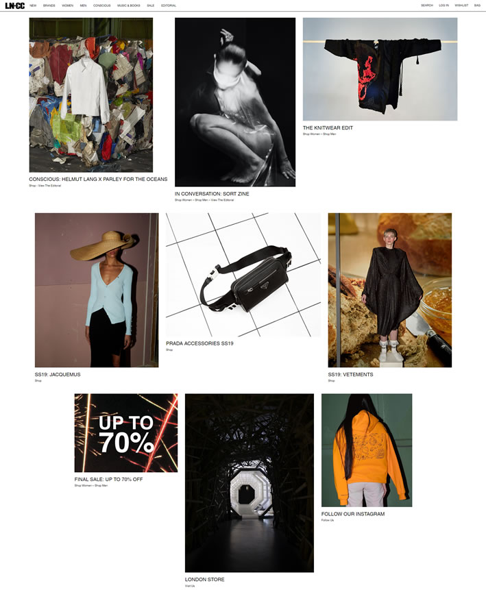 LN-CC不是單純的網(wǎng)絡(luò)店鋪,他更像是倫敦時尚生活的縮影。LN-CC的風(fēng)格簡約而前衛(wèi),儼然如同Dover street market的網(wǎng)絡(luò)版本。相對中間值的輕奢定位,讓他在保持時尚度受年輕人追捧的同時,也有一定的商業(yè)獨(dú)特性。