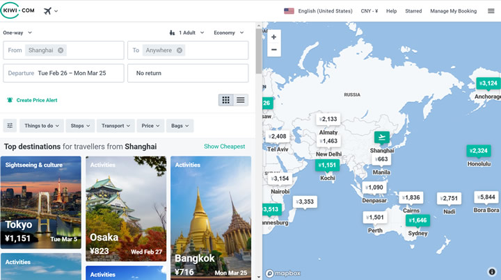 廉價航班、火車、酒店和租車,全天候24/7客戶支持和Kiwi.com保證??诖镉谢邮降貓D,機場和目的地指南,可探索新的旅行方式。