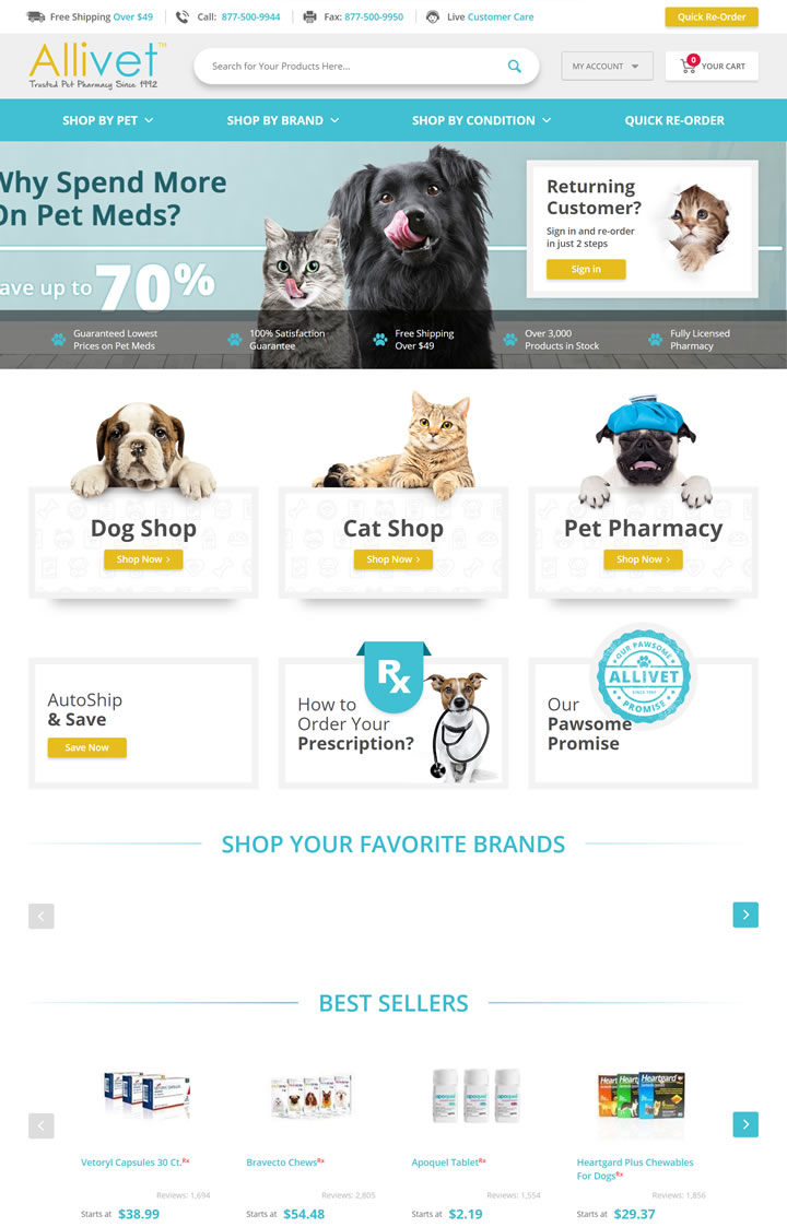 歡迎訪問allivet.com,這是您自1992年以來最值得信賴的寵物藥房!我們是優質寵物藥物、農場和牧場工具的精選供應商,20幾年來,我們一直為國內外客戶提供難以找到的寵物藥物和獸醫用品。因為我們是一家持牌藥房,我們的產品和設施定期接受國家機構的檢查和信任,因為我們努力超越所有期望。您可以放心地知道,我們的藥房通過維持最高藥房標準獲得了藥房認證。我們的藥劑師也是寵物父母,了解您和您的寵物的需求。