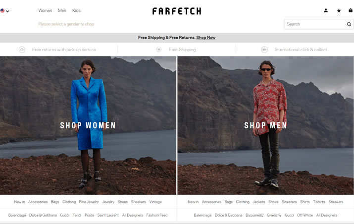 Farfetch是一個在線時尚零售平臺,銷售來自全球700多家精品店和品牌的時尚產品。FarFetch.com是男士和女士在線豪華設計師時裝的絕佳資源。如果您想通過各種時尚商品增加衣櫥,這是一個完美的購物公司。大部分商品都采用現代設計,因此您可以在現代服裝的任何場合留下深刻印象。受歡迎的設計師系列包括Acne和Rick Owens。
