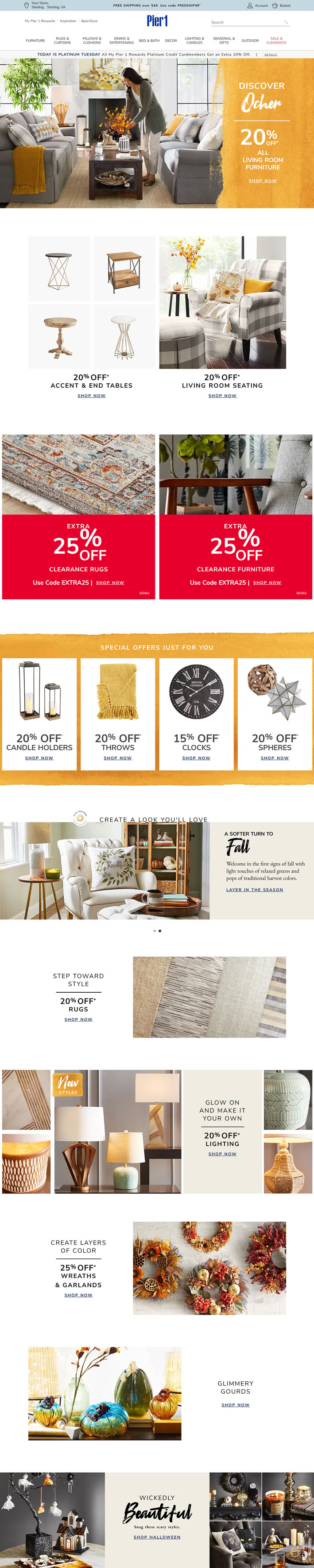 在Pier1.com購買獨特的家具、季節性裝飾、家居裝飾等。任何超過49美元的訂單免費送貨!Pier 1搜尋世界上最有天賦的工匠,發現和發展時尚前沿趨勢,并專門為您精心制作獨家產品。