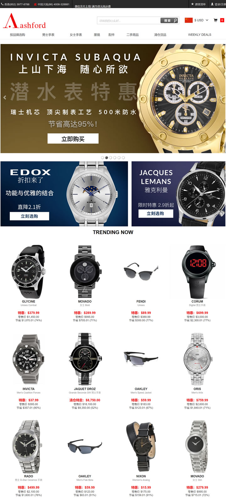 Ashford成立于1997年,總部位于美國紐約布魯克林,是一家專業提供高端時尚珠寶及時尚手表的在線商城。它是美國最大的一家網絡手表銷售商之一,以低折扣和品種齊全著稱。在Ashford,你可以找到瑞士表、日表、美國表以及高端品牌手表如:美度、漢米爾頓、卡西歐等。