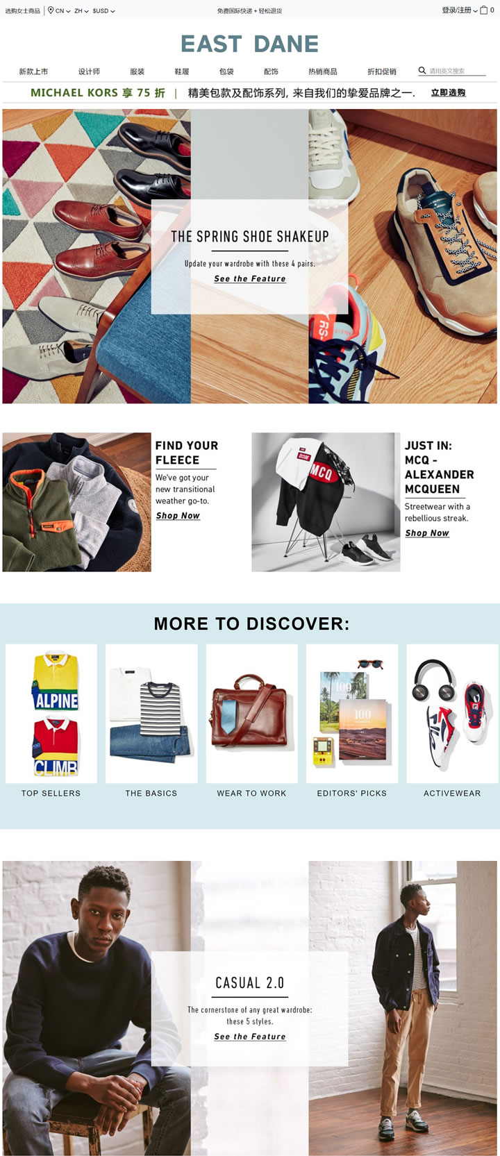 美國亞馬遜旗下男裝網站:East Dane(支持中文)