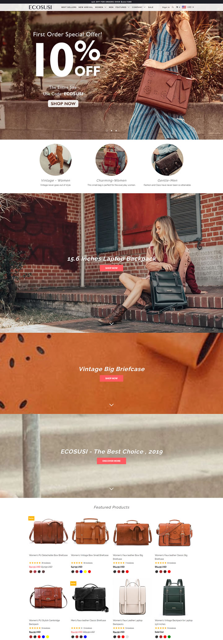 受到復古和現代設計的啟發,ECOSUSI包適合您的生活方式。各種公文包、斜挎包、背包、手提包、旅行包等。 訂單滿50美元免運費。
