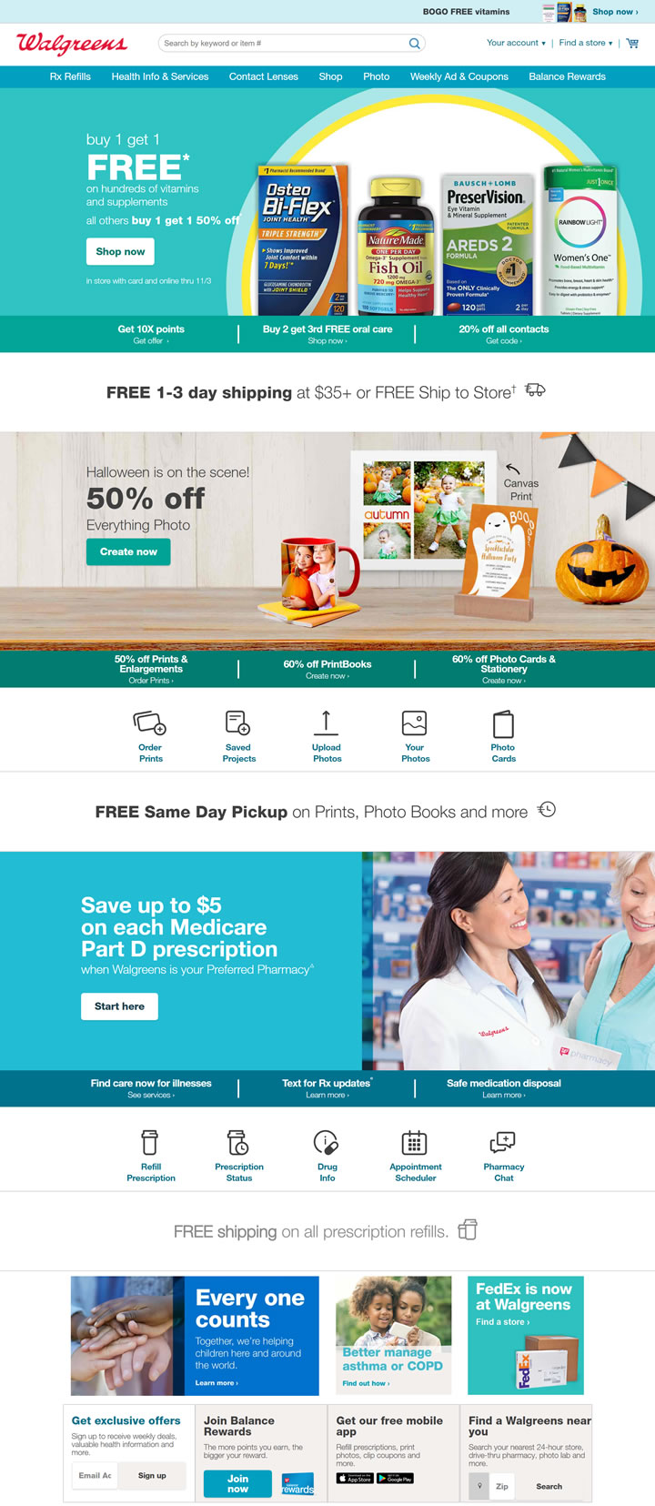 Walgreens成立于1901年,其目標是成為全國消費者健康和日常生活的首選。該公司提供最便捷、多渠道商品和服務,健康和保健以及藥房服務,同時開發新的客戶體驗。 Walgreens在線提供超過60000種產品,包括照片、隱形眼鏡、嬰兒、美容及個人護理、飲食與健身、家庭保健解決方案、維生素等等!