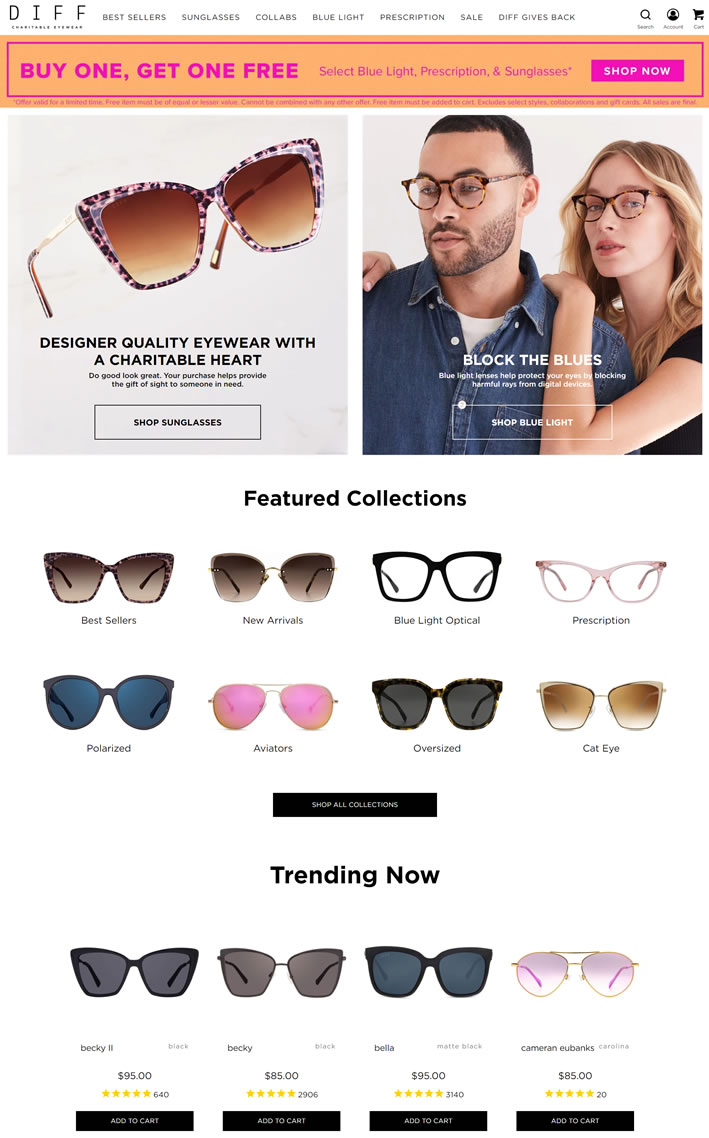選購DIFF時尚手工制作的設計師太陽鏡、藍光眼鏡和處方眼鏡。