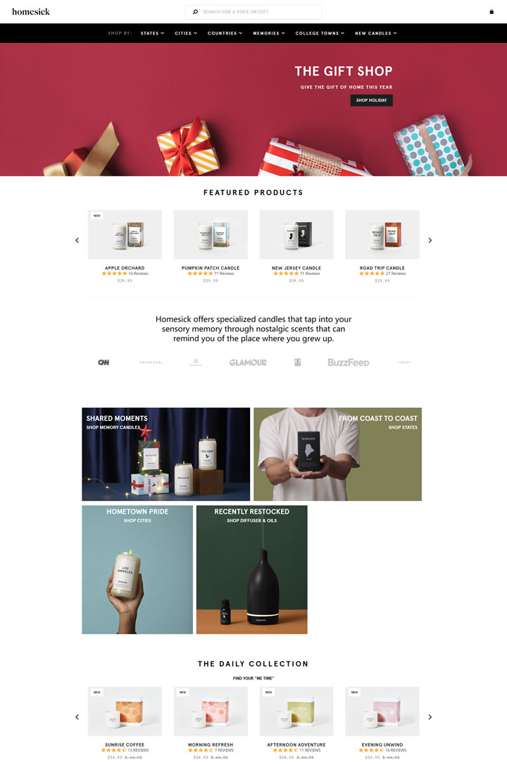 Homesick提供專門的蠟燭,通過懷舊的氣味打入您的感官記憶,使您想起您長大的地方。