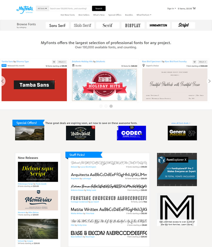 MyFonts.com是世界上最大的字體市場,使設計師有機會從160000多種字體中進行選擇。