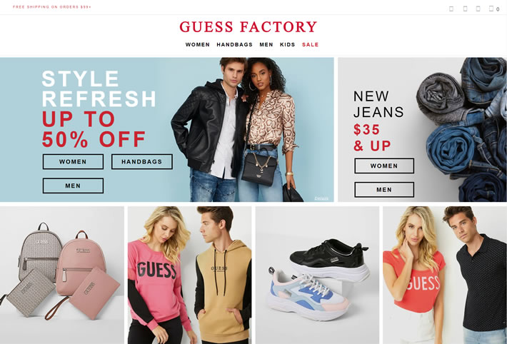 GUESS.com(蓋爾斯)是一家全球知名的服裝品牌,在蓋爾斯工廠店你可以買到各種打折促銷的服裝、飾品以及丹寧褲等。