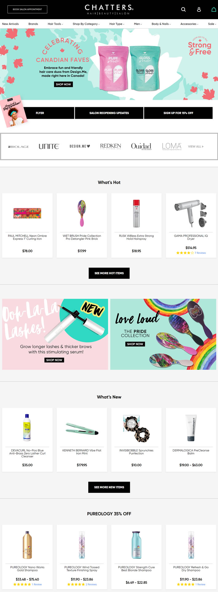 Chatters美發(fā)沙龍是加拿大在商店和網(wǎng)上提供美發(fā)服務(wù)和專業(yè)美發(fā)產(chǎn)品的首選目的地。從Redken、Design.Me、Unite、Verb、AG Hair、Pureology、CHI、Nioxin和Schwarzkopf等品牌預(yù)訂頭發(fā)預(yù)約、購買美發(fā)工具、洗發(fā)水、護(hù)發(fā)素、美容產(chǎn)品等。