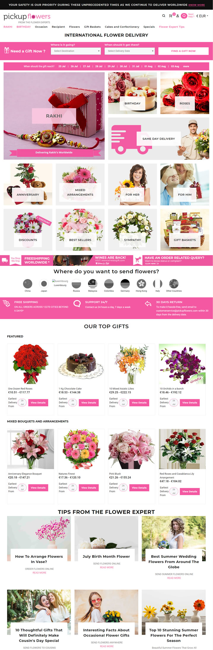生日、周年紀念、婚禮慶典等各種各樣的鮮花禮品。從我們的國際花店在線訂購鮮花。在線發送Rakhi禮物。來自180個國家的3100萬快樂客戶。