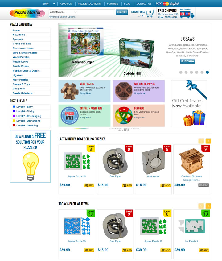 Puzzle Master是一個排名第一的在線拼圖購買平臺,在這里您可以找到大量的金屬絲、金屬、拼圖、立方體、木拼圖和腦筋急轉(zhuǎn)彎。