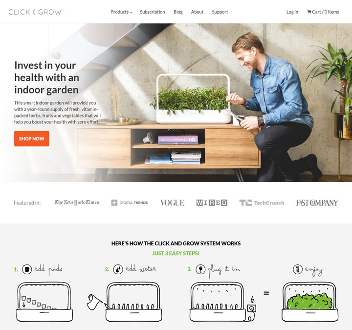 Click & Grow智能室內(nèi)花園是最先進(jìn)、最簡單的室內(nèi)園藝解決方案。全年享受您自己的室內(nèi)花園種植的新鮮草本植物。