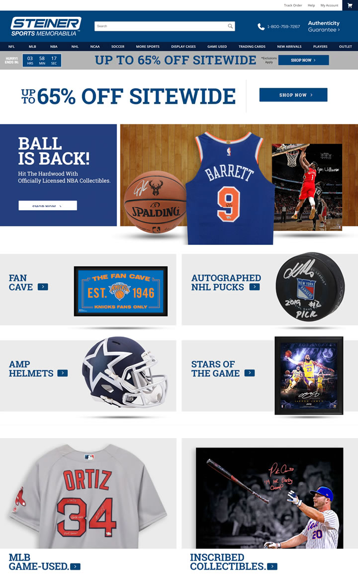 Steiner Sports收藏品和紀念品。Steiner Sports是正宗手工簽名收藏品的主要生產商,他花了32年時間與2000多名運動員建立了關系,與主要體育聯盟建立了國家關系,并與體育界最好的團隊建立了合作關系。