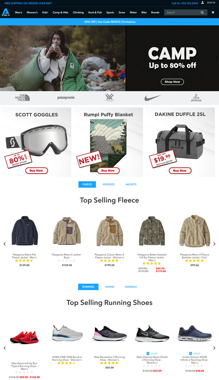Al’s是猶他州最古老的體育用品公司,購物者可以在其中找到最好的裝備,并保證以最優惠的價格出售。這家商店擁有業內頂級品牌的裝備和服裝,可以為任何冒險家提供裝備,無論他們是遠足、滑雪、露營還是攀巖。