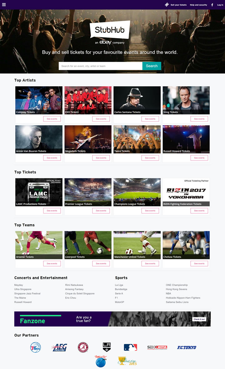 通過快速和安全的方式購買或出售各類體育賽事、演唱會、表演等活動門票。StubHub是您最佳保障。