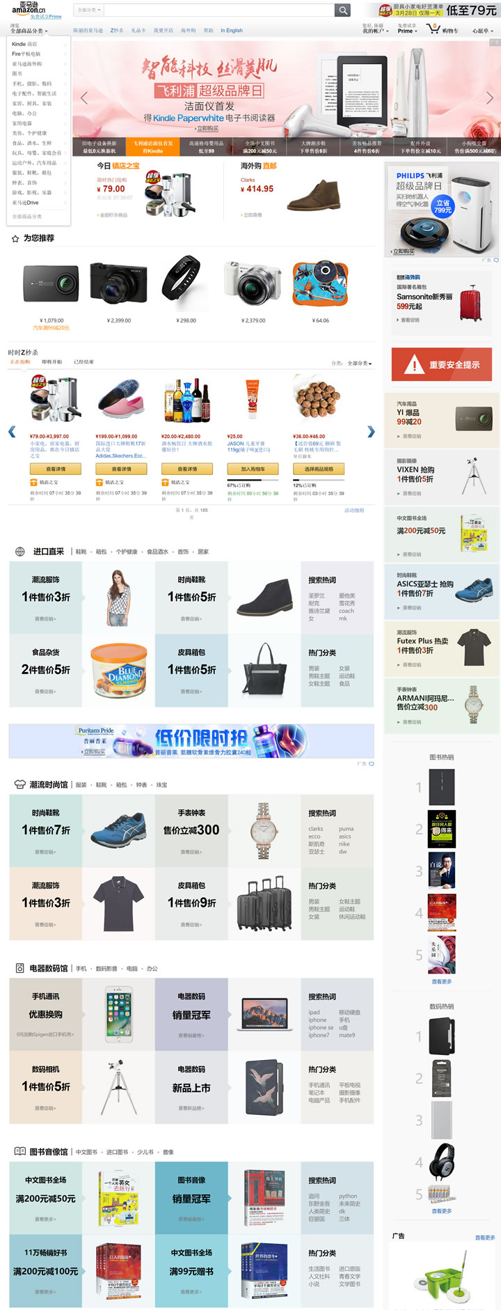 亞馬遜中國(z.cn)堅持“以客戶為中心”的理念,秉承“天天低價,正品行貨”信念,銷售圖書、電腦、數碼家電、母嬰百貨、服飾箱包等上千萬種產品。亞馬遜中國提供專業服務:正品行貨天天低價,機打發票全國聯保。貨到付款,30天內可退換貨。亞馬遜為中國消費者提供便利、快捷的網購體驗。