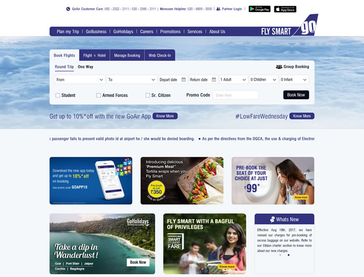 GoAir是印度領先的航空公司,提供最便宜的機票。Go Airlines(印度)有限公司是Wadia集團的航空公司,它以品牌GoAir運作。 2005年11月,GoAir作為低價航空公司開展運營。