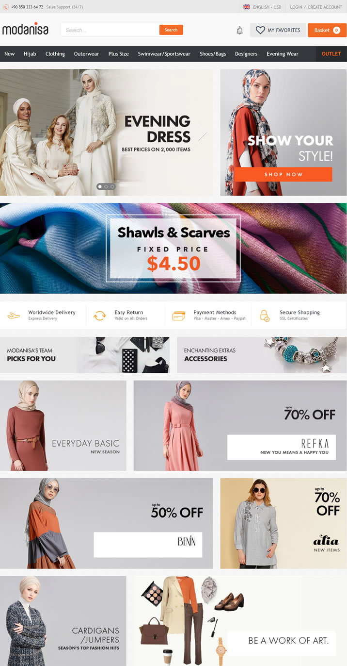 Modanisa.com是土耳其第一個也是唯一一個在全球75個國家銷售的國際性購物網(wǎng)站,每月訪問量超過600萬人次。在Modanisa.com發(fā)現(xiàn)最新的時尚頭巾和女裝,價格優(yōu)惠,并有退貨保證。