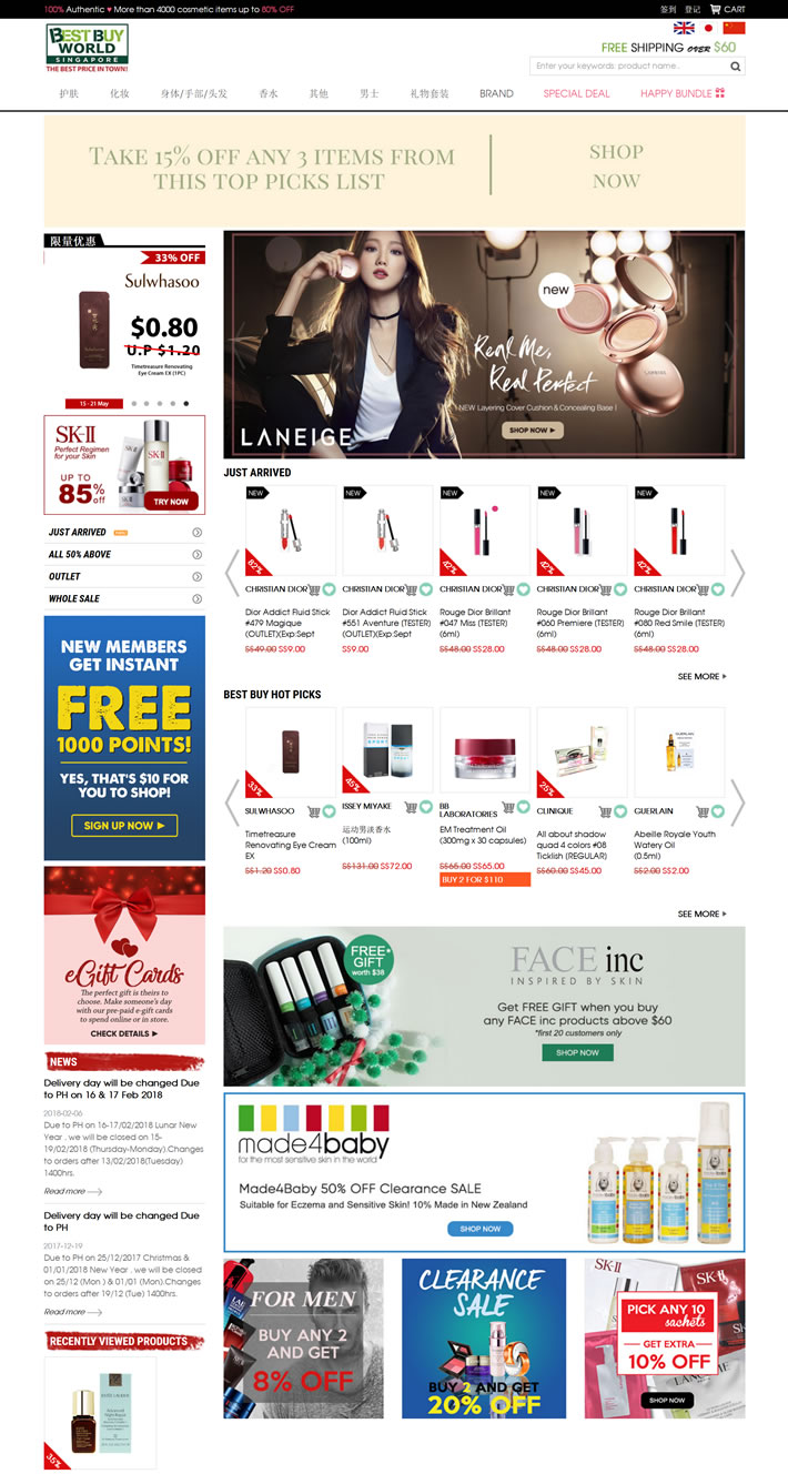 新加坡網(wǎng)上化妝品店,購(gòu)買護(hù)膚品、化妝品、身體護(hù)理、頭發(fā)護(hù)理、香水等。